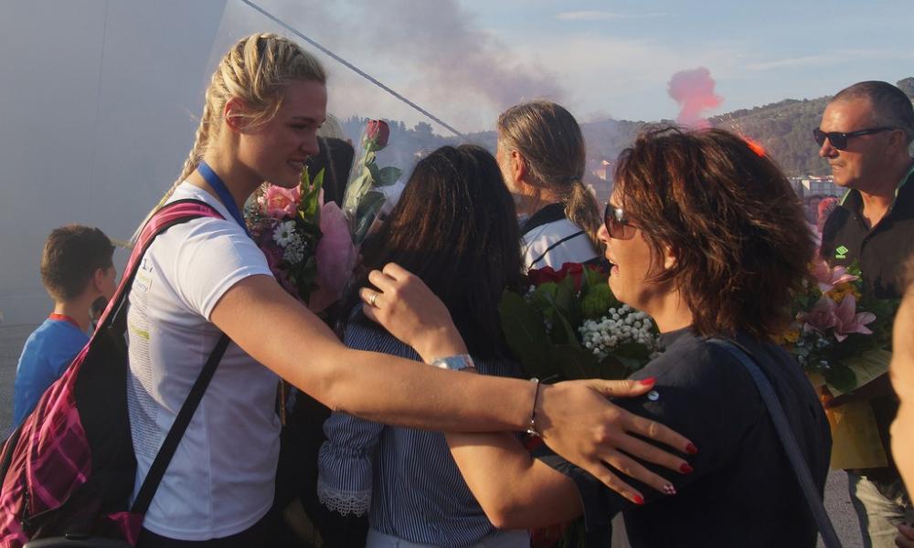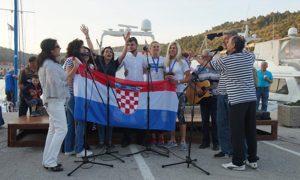 U organizaciji Općine Vela Luka i Zajednice sportskih klubova Vele Luke, sestre Jurković dočekala je Narodna glazba i veliki broj Velolučana na trajektnom pristaništu. Nakon brojnih čestitaka sestre Jurković, uz pratnju Narodne glazbe, su brodom Muro napravile đir po Luškoj vali i dovezene u centar mjesta na Velu rivu gdje je nastavljena svečanost dočeka. Ispred velikog broja prisutnih javne čestitke uputili su im Anito Šeparović, predsjednik VK Ošjak, prof. Tino Dragojević trener koji je se sve dosadašnje godine brinuo o njima, te Općinski načelnik Tonko Gugić Bakan. Sestre Jurković su se zahvalile na svečanom dočeku i obećale još bolje veslačke uspjehe. Svečanost dočeka na Veloj rivi uveličali su pjesmom klapa FD Kumpanija, koju vodi Janes Vlašić, sviranjem Veloluški evergrini, a za pripremu jela pobrinuli su se udruge Liga protiv raka i Luško lito.